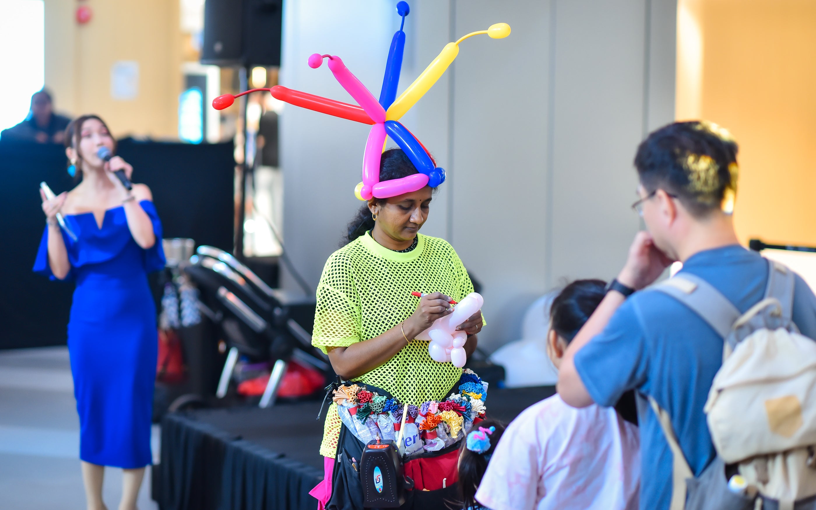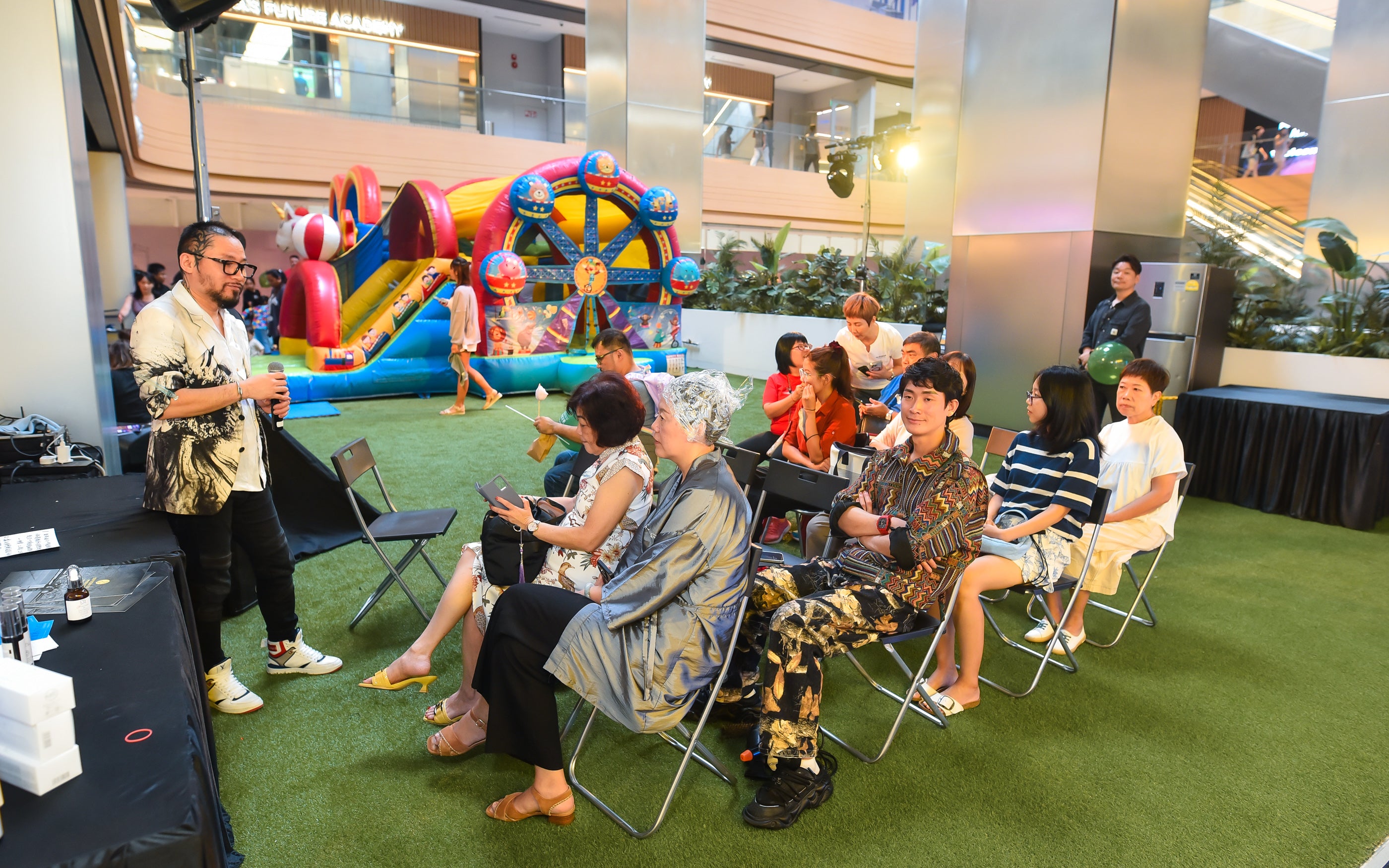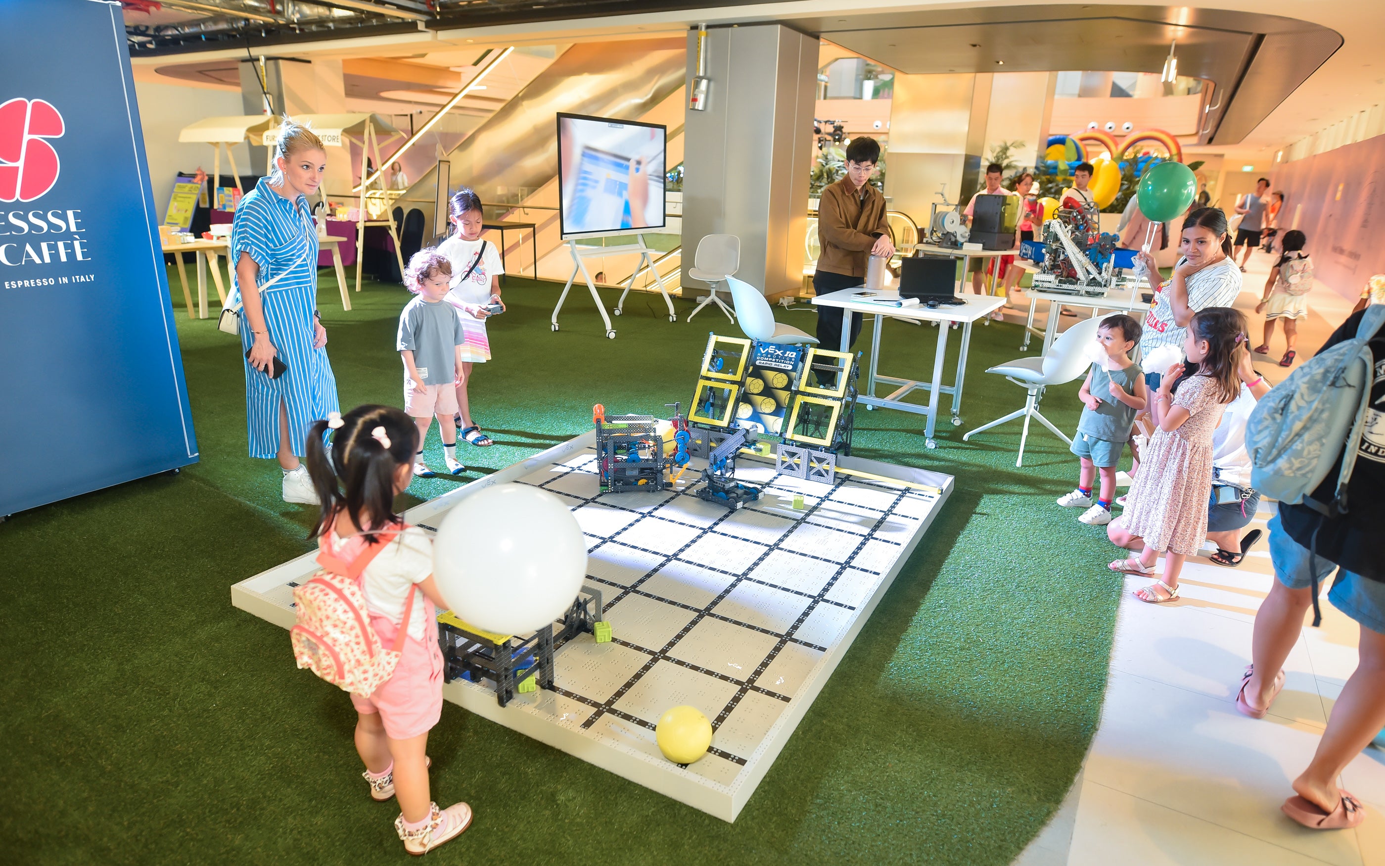 In addition, LED inflatable columns were set up across multiple levels, illuminating the space at night and adding a futuristic touch.