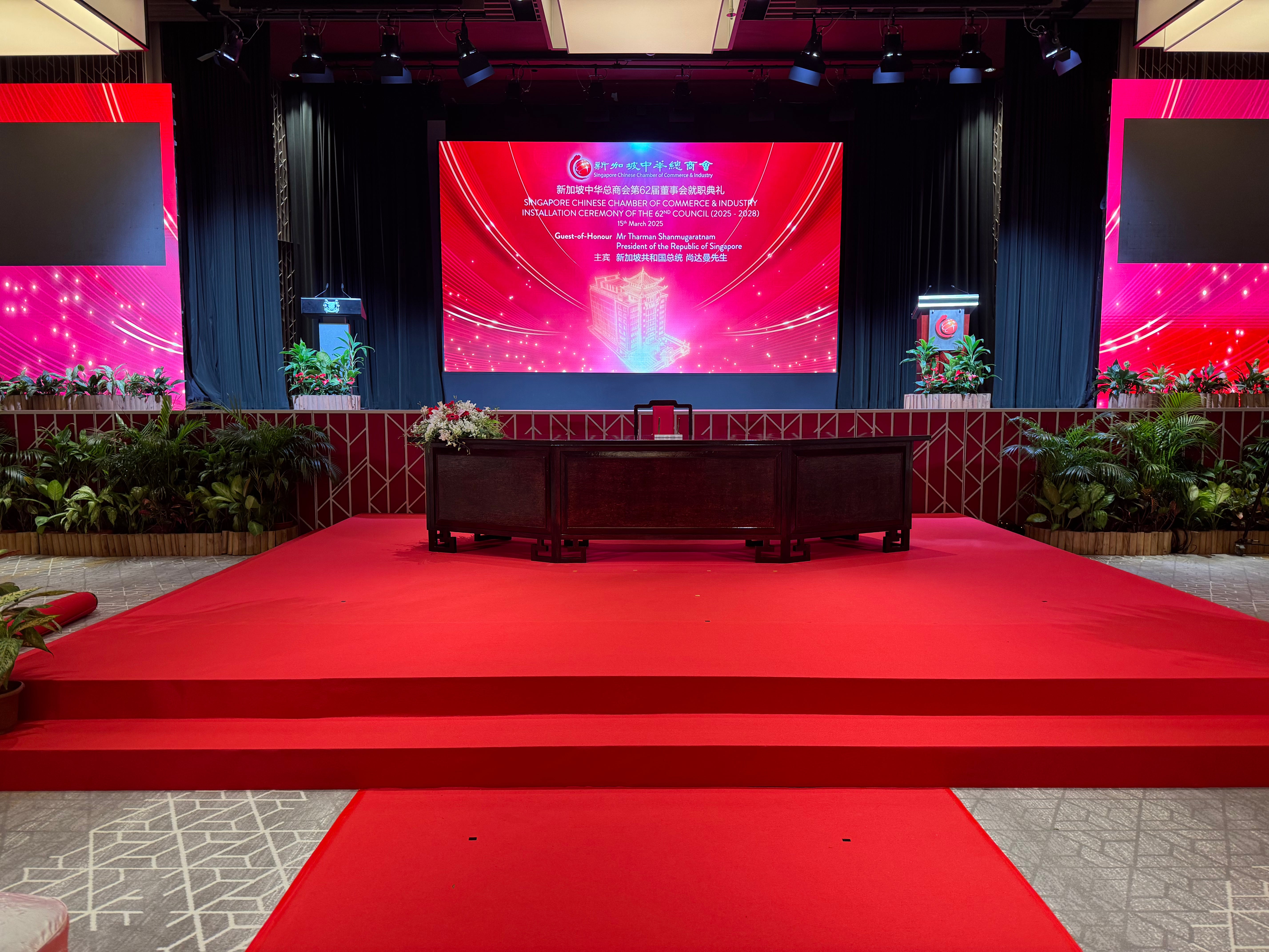 Commissioned by the Singapore Chinese Chamber of Commerce & Industry (SCCCI), Ooffle delivered a full-scale event production for the SCCCI 62nd Council Inauguration & Institutional Event 2025. As a prestigious institutional milestone, the ceremony brought together senior government representatives, business leaders, and distinguished guests, requiring exceptional precision in staging, technical execution, and protocol management.