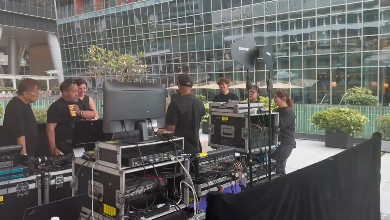 For sound, the setup included 2–4 high-performance waterproof speakers and wireless microphones, allowing a clean and efficient configuration for fast setup and teardown, maximizing stage efficiency and safety.